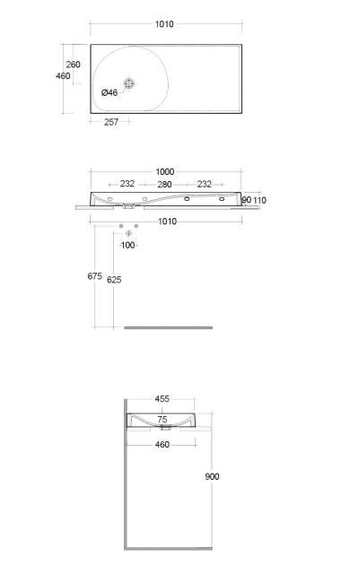 REMAL Umywalka podwieszana & nablatowa 101 x 46 cm R blat z prawej strony Biały połysk