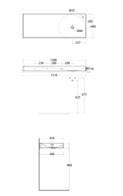 REMAL Umywalka podwieszana & nablatowa 121 X 46 cm L blat z lewej strony z otworem na baterię biały połysk
