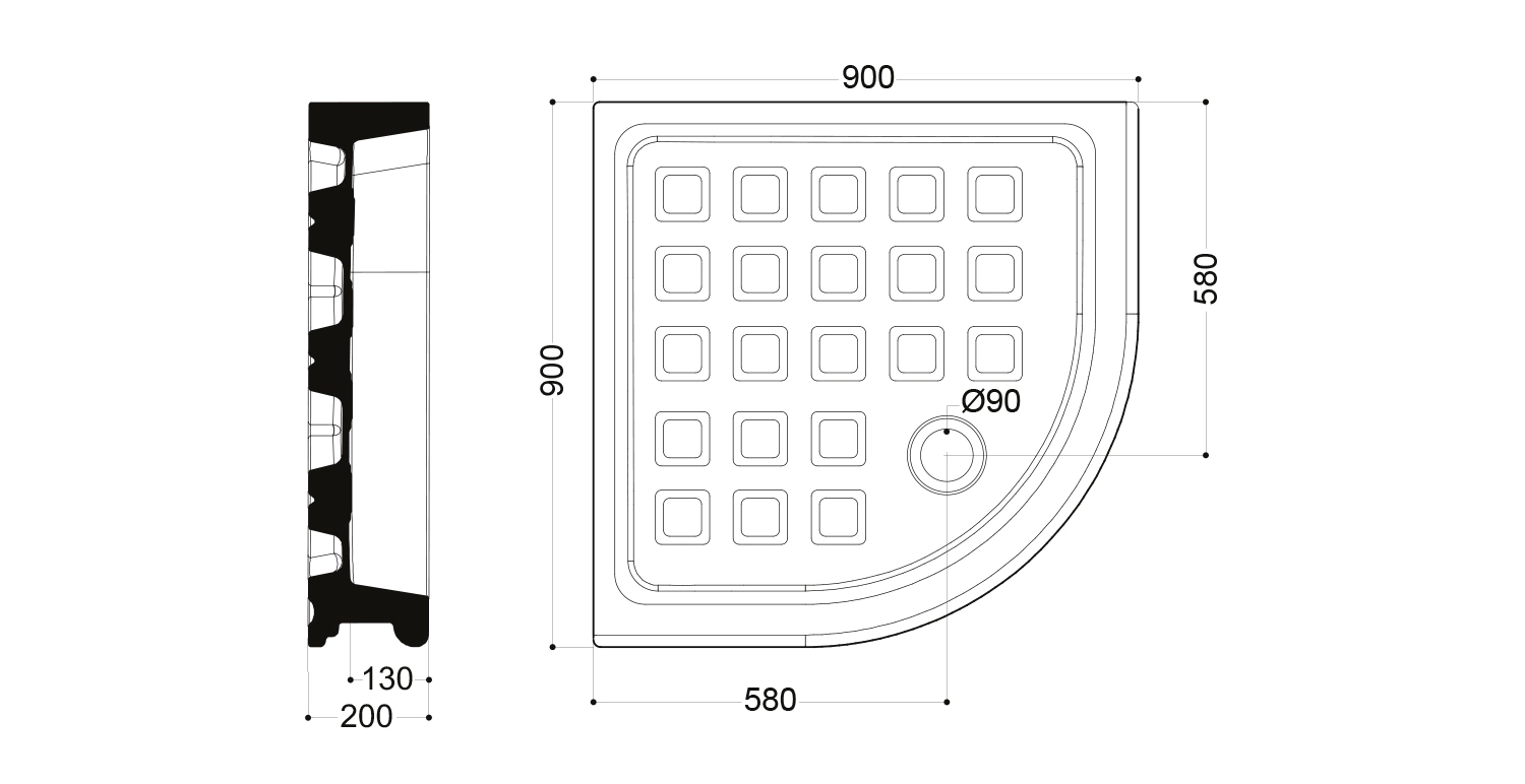 RETRO brodzik prysznicowy ceramiczny, półokrągły 90x90x20cm, R550, biały
