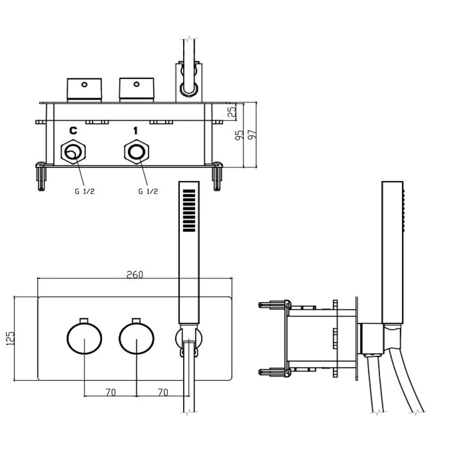 RHAPSODY sestaw prysznicowy podtynkowy z baterią termoststyczną, 2/3 wyjścia, chrom