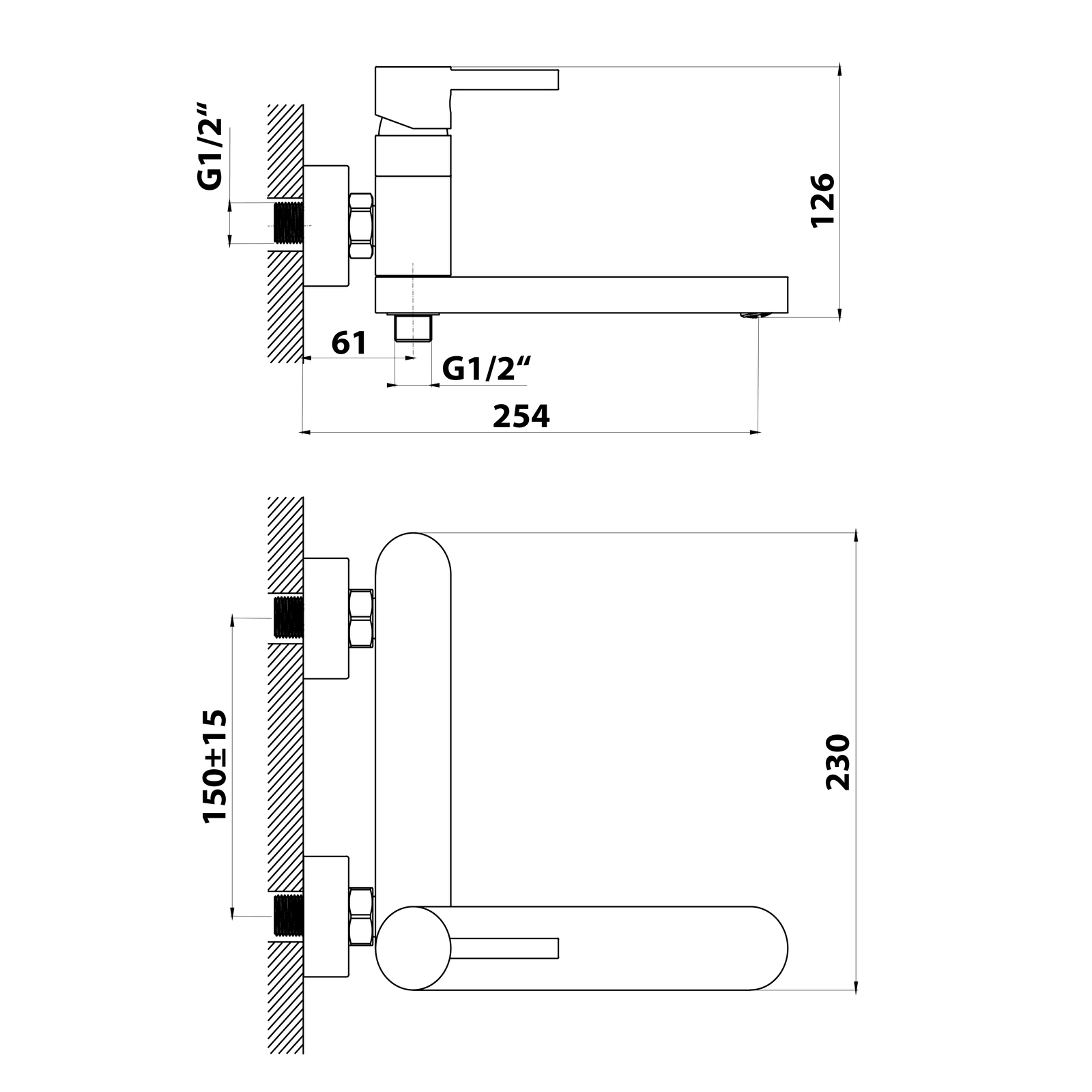 MIXONA bateria wannowa ścienna z obrotową wylewką, chrom