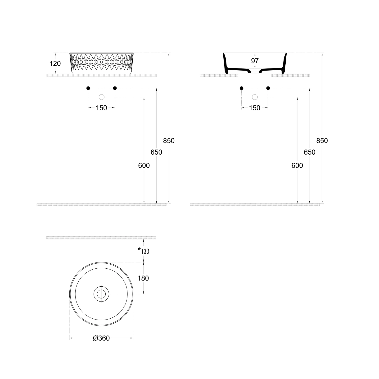ROMBO umywalka ceramiczna nablatowa, Ø 36cm, biały