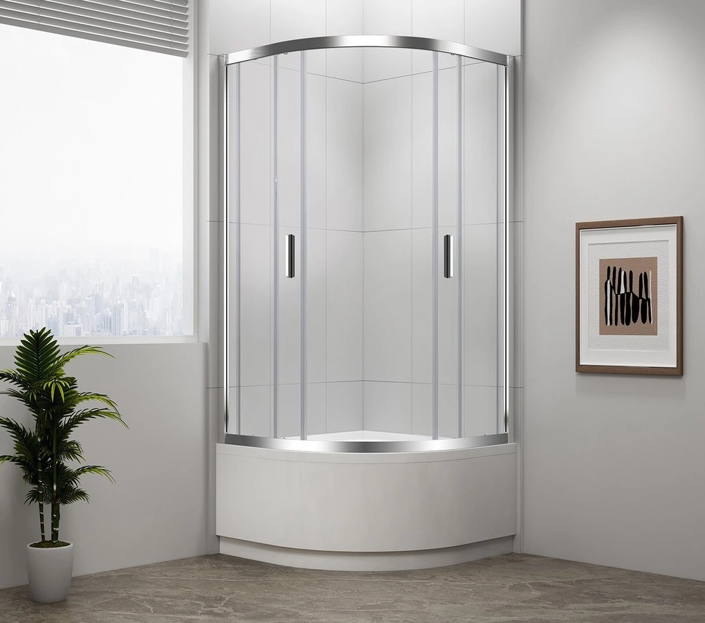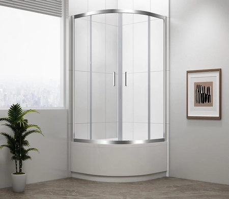 Kabina prysznicowa półkokrągła z drzwiami przesuwnymi, do głębokich brodzików