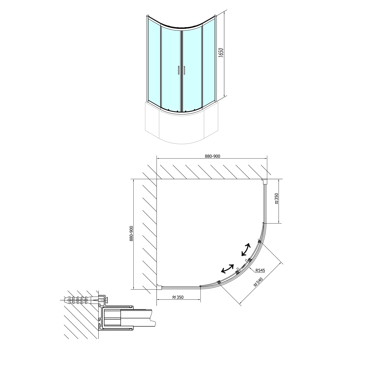 • Kabina półokrągla, dwuczęściowe drzwi przesuwne