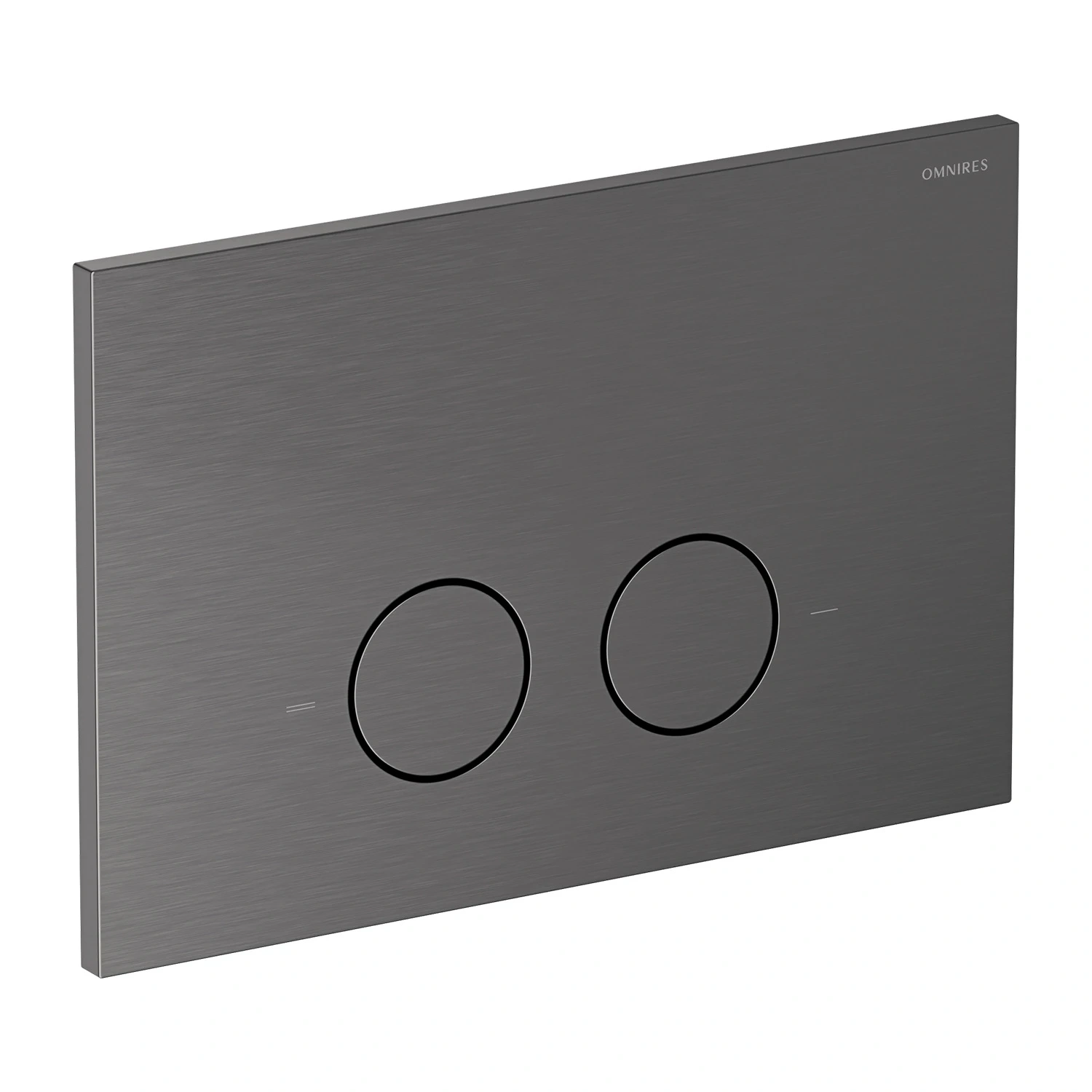 Przycisk spłukujący jest wykończony w kolorze antracyt – współczesnym wykończeniem o głębokim, metalicznym odcieniu i satynowej, szczotkowanej powierzchni. Powłoka została wykonana w zaawansowanej technologii PVD.