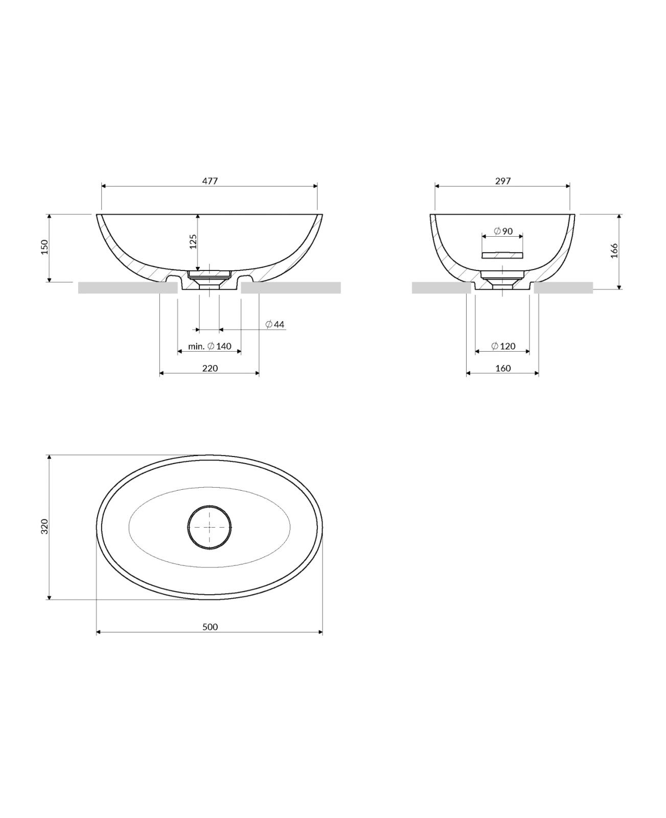 SHELL M+ | umywalka nablatowa, 50 x 32 cm