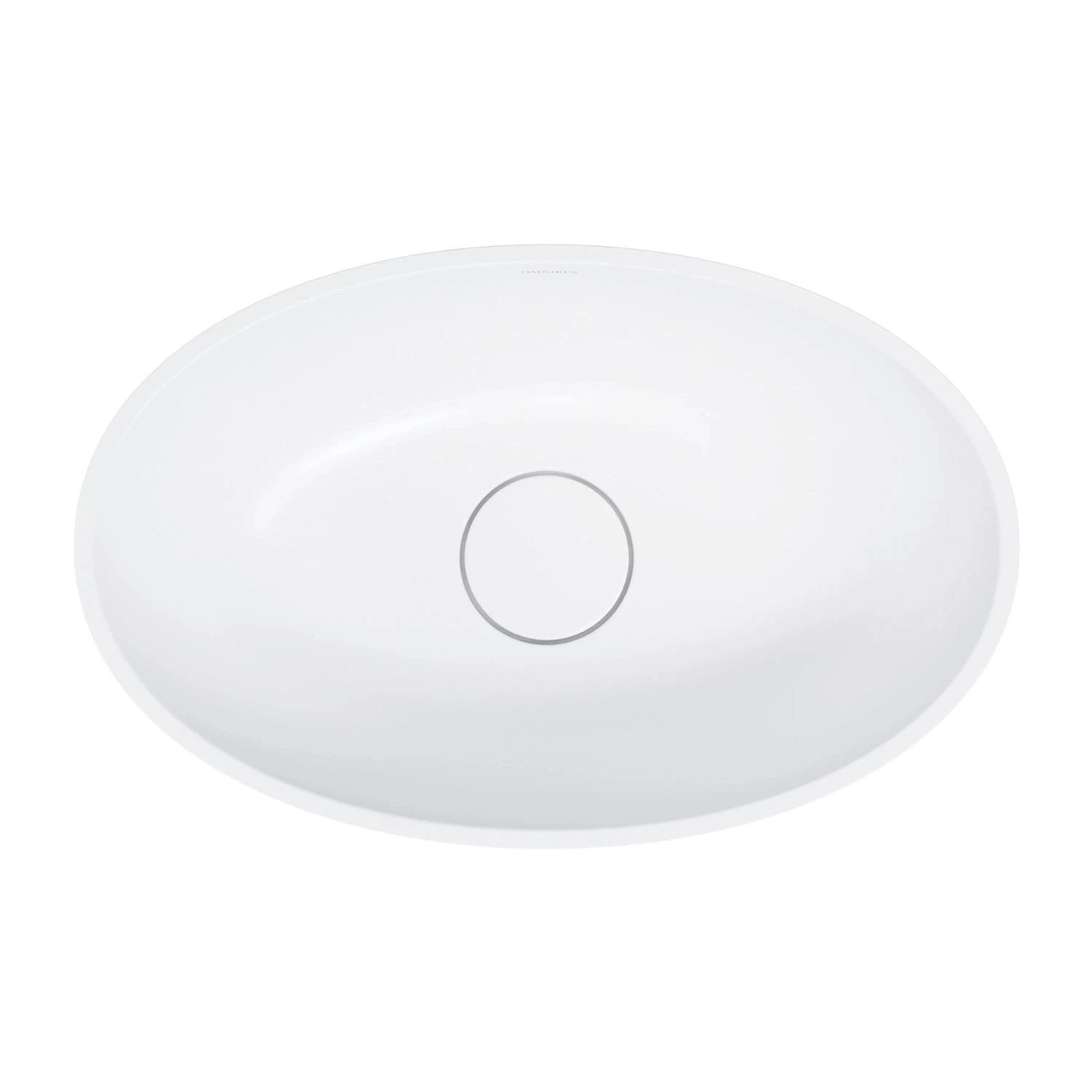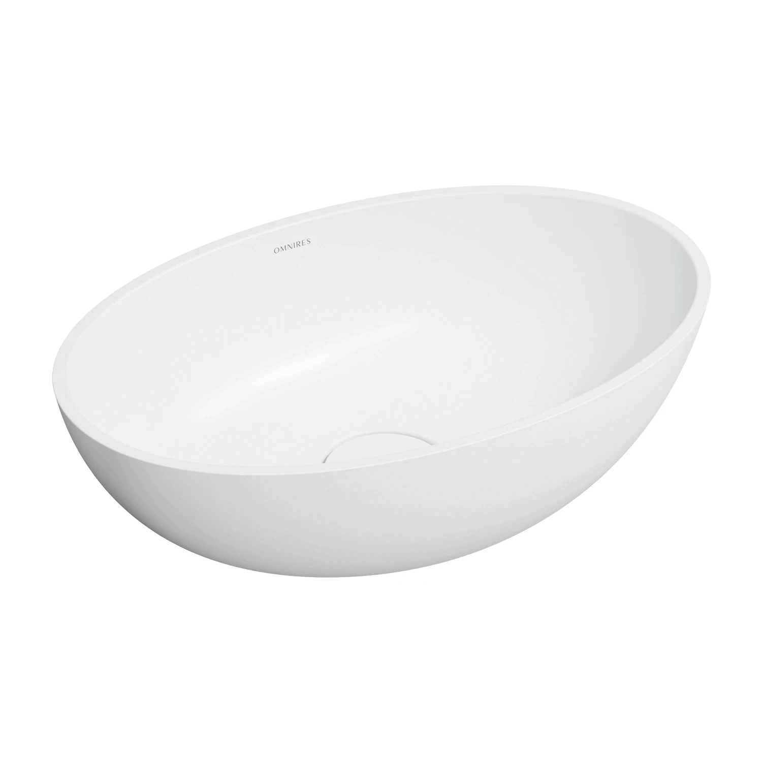 Umywalka nablatowa z kolekcji OMNIRES SHELL M+ charakteryzuje się współczesną eliptyczną formą, która miękką linią zwęża się ku podstawie. Minimalistyczna bryła wygląda lekko a zarazem solidnie, tworząc efekt wyrzeźbionego ze skały monolitu. Wewnątrz umywalki dopasowana maskownica dyskretnie zakrywa odpływ, nie zaburzając przy tym harmonijnie wyprofilowanej sylwetki.