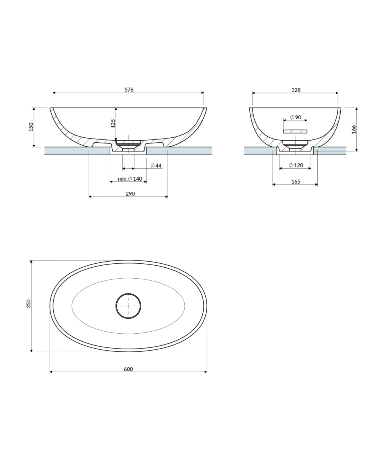 SHELL M+ | umywalka nablatowa, 60 x 35 cm