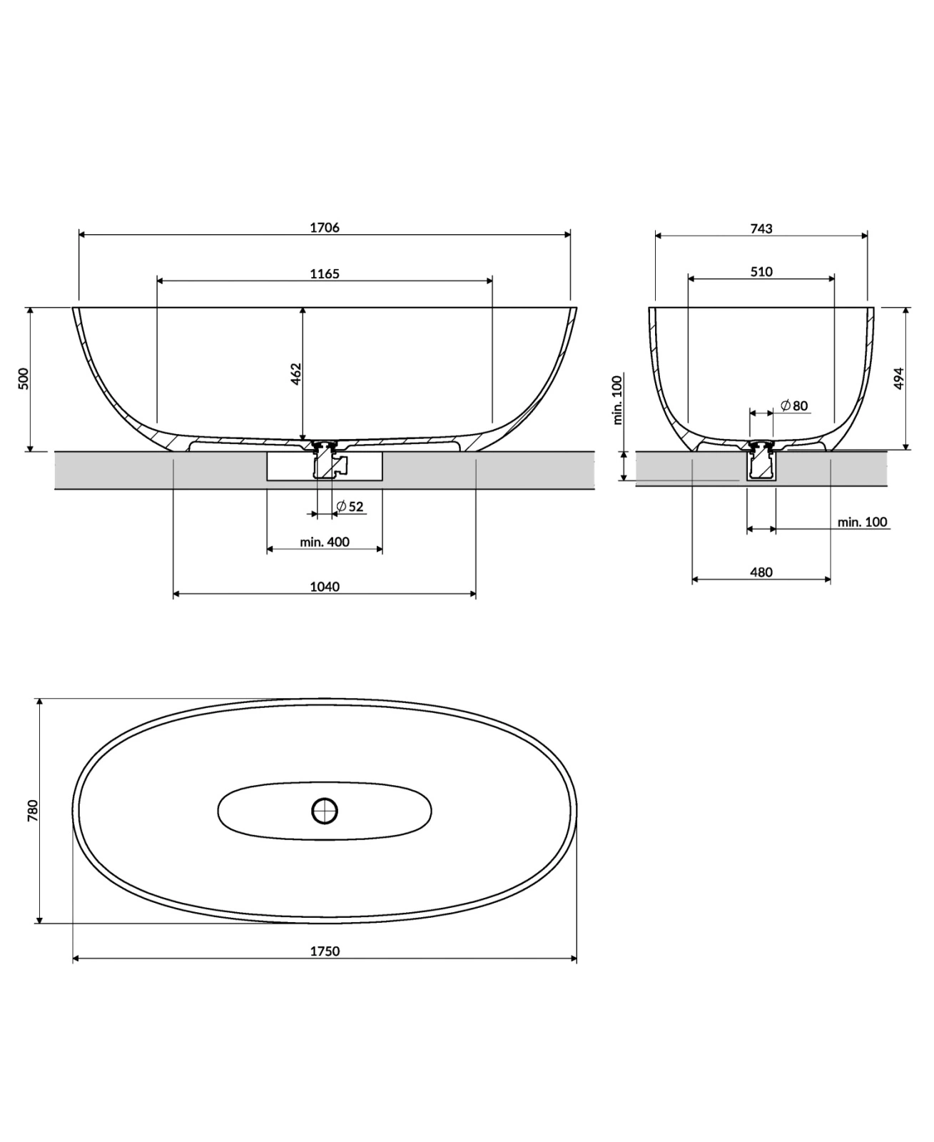 Wanna wolnostojąca z kolekcji OMNIRES SHELL M+ charakteryzuje się współczesną eliptyczną formą, która miękką linią zwęża się ku podstawie. Minimalistyczna bryła wygląda lekko a zarazem solidnie, tworząc efekt wyrzeźbionego ze skały monolitu. Wewnętrzny profil został wyprowadzony tak, by zapewnić komfort podczas kąpieli. Bryła wykończona jest solidnymi, precyzyjnie wykonanymi rantami o grubości 2 cm. Wanna charakteryzuje się niskim osadzeniem, co wzmacnia komfort użytkowania przy samodzielnym wchodzeniu i wychodzeniu czy kąpaniu dzieci. Posiada wygodne w użytkowaniu rozwiązania, takie jak syfon z dopasowanym korkiem klik-klak w komplecie, czy odpływ zlokalizowany centralnie, dzięki czemu w wannie mogą wygodnie wypoczywać dwie osoby.