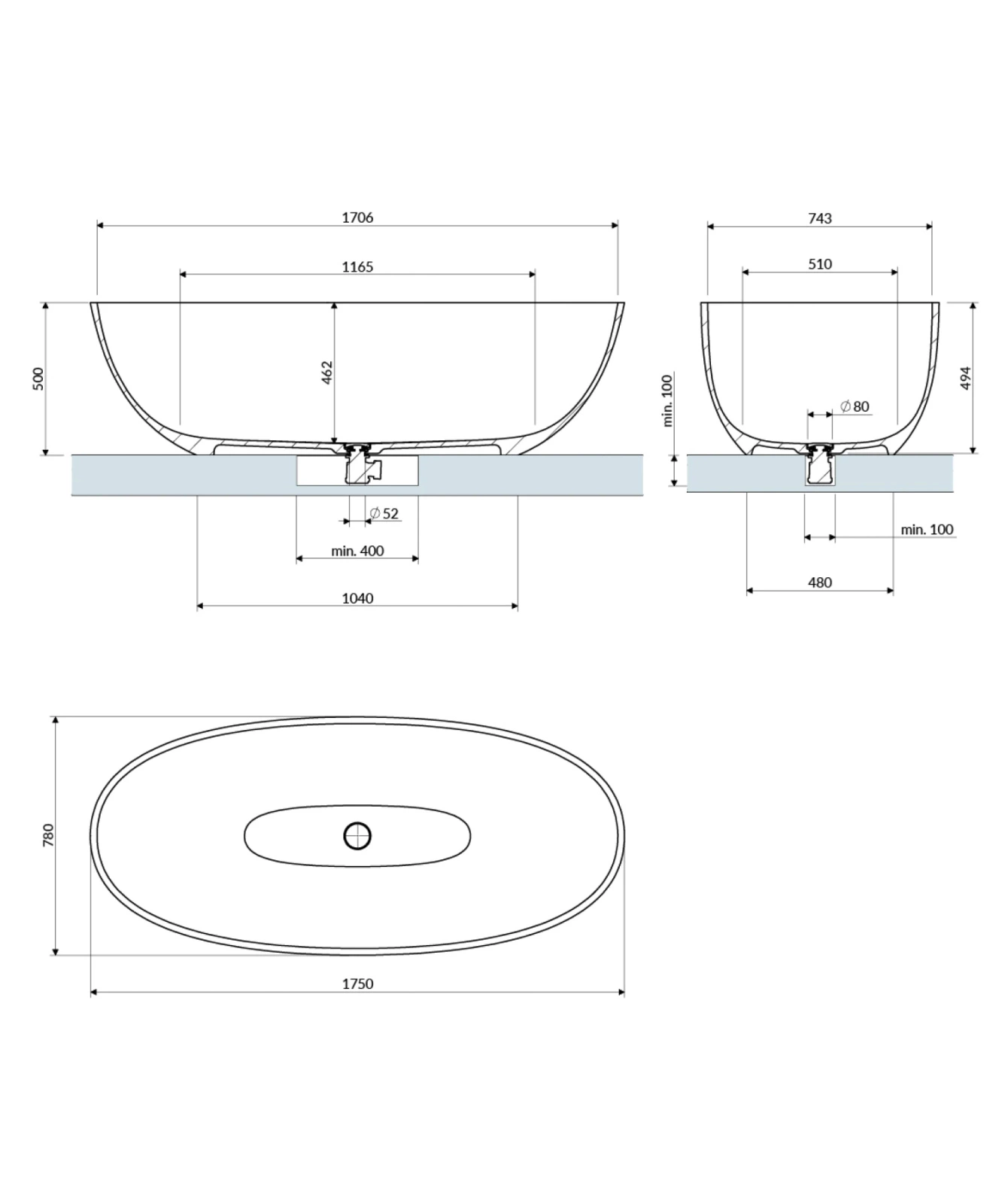 SHELL M+ | wanna wolnostojąca, 175 x 78 cm