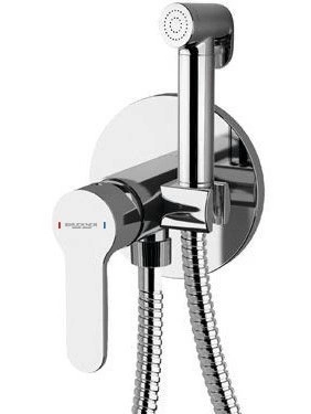 SIEGER bateria bidetowa podtynkowa z prysznicem Stop, okrągła, chrom