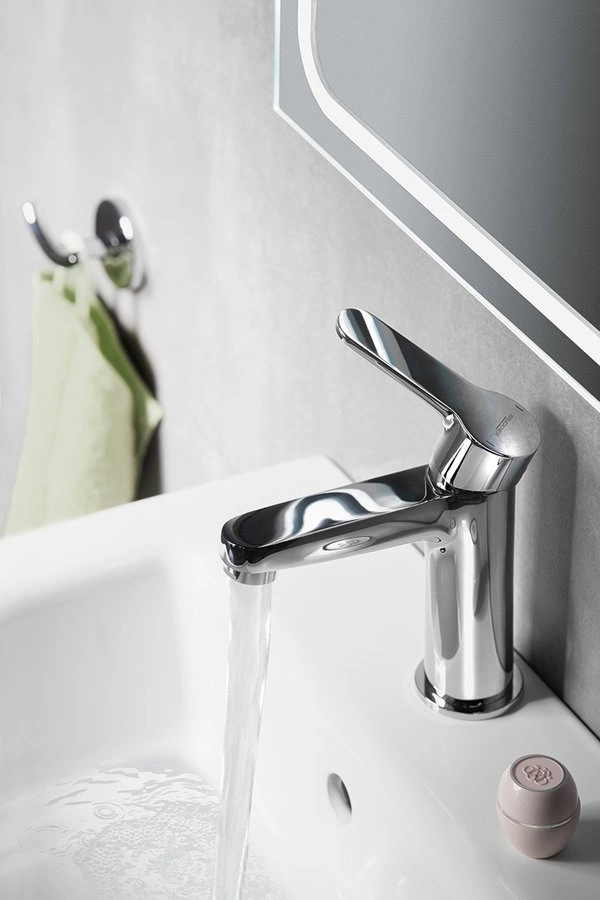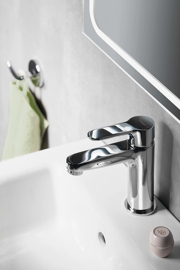 Seria baterii Sieger to nowoczesny design podkreślony zaokrągloną krawędzią. Dzięki takiemu połączeniu kształtów dobrze komponują się z innymi elementami w łazience.