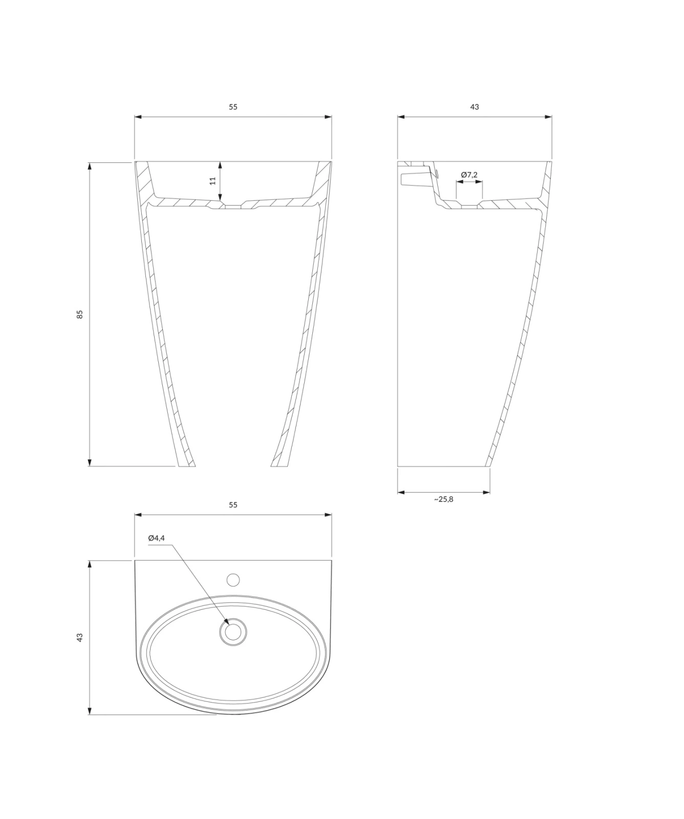 SIENA M+ | umywalka wolnostojąca, 55 x 43 cm