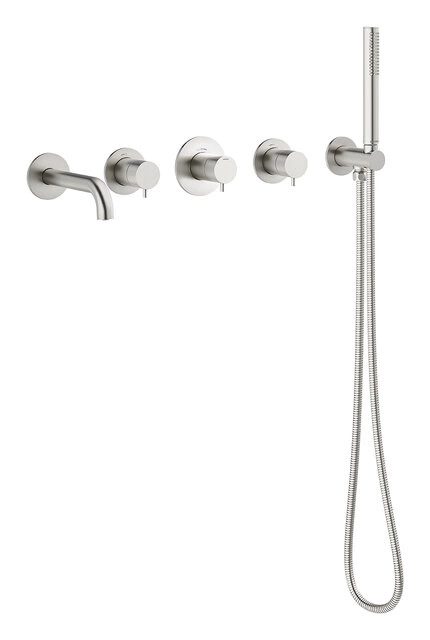 Zestaw wykończeniowy Silhouet BS 2 do armatury wannowej w Stalowym PVD oferuje nowoczesny i przemysłowy wygląd dla Twojej łazienki. Zestaw zawiera wylot do wanny, słuchawkę prysznicową oraz termostat z dwoma zaworami odcinającymi, które zapewniają efektywną i precyzyjną regulację temperatury.