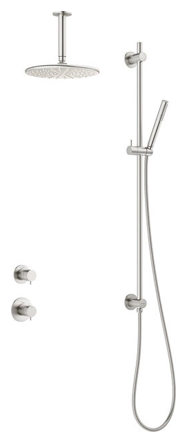 W zestawie deszczownica, słuchawka prysznicowa i wąż prysznicowy