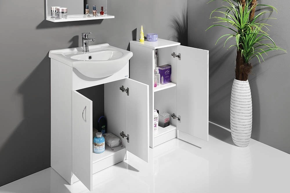 Proste i funkcjonalne meble łazienkowe – idealne rozwiązanie dla Twojej łazienki. Gama szafek pod umywalkę w czterech wymiarach (od 50 cm do 65 cm szerokości) w połączeniu z kilkoma wariantami dodatkowych szafek oferuje praktyczną aranżację mebli do niemal każdej łazienki w najlepszej cenie.