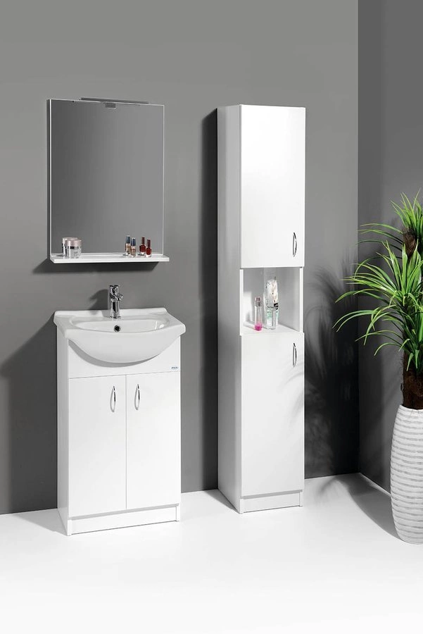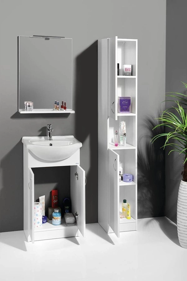 Proste i funkcjonalne meble łazienkowe – idealne rozwiązanie dla Twojej łazienki. Gama szafek pod umywalkę w czterech wymiarach (od 50 cm do 65 cm szerokości) w połączeniu z kilkoma wariantami dodatkowych szafek oferuje praktyczną aranżację mebli do niemal każdej łazienki w najlepszej cenie.