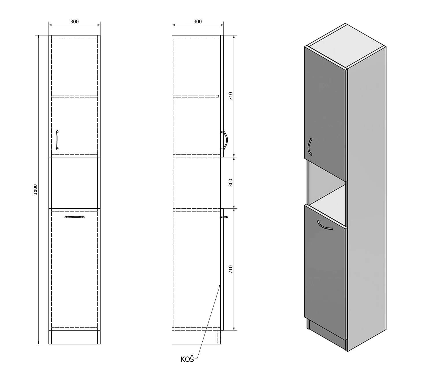 SIMPLEX ECO szafka wysoka z koszem na bieliznę 30x180x30cm
