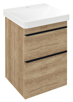 Szuflady wyposażone są w pojazdy z cichym domykiem, drzwiczki posiadają zawiasy zwalniające. Uchwyty są dostępne w kolorach czarny mat i biały mat.