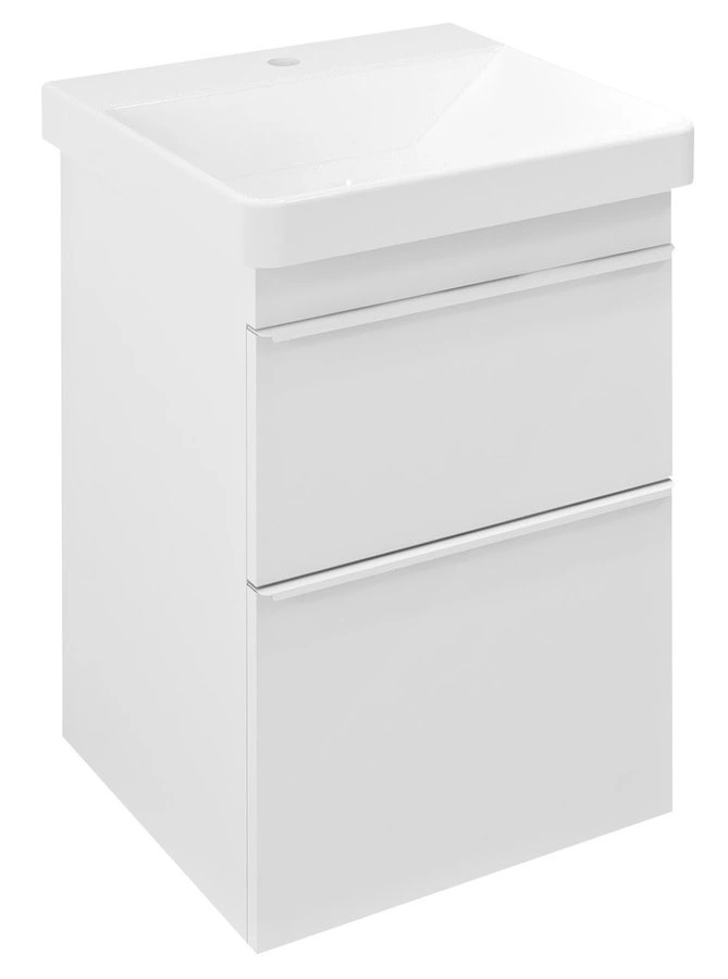 Szuflady wyposażone są w pojazdy z cichym domykiem, drzwiczki posiadają zawiasy zwalniające. Uchwyty są dostępne w kolorach czarny mat i biały mat.