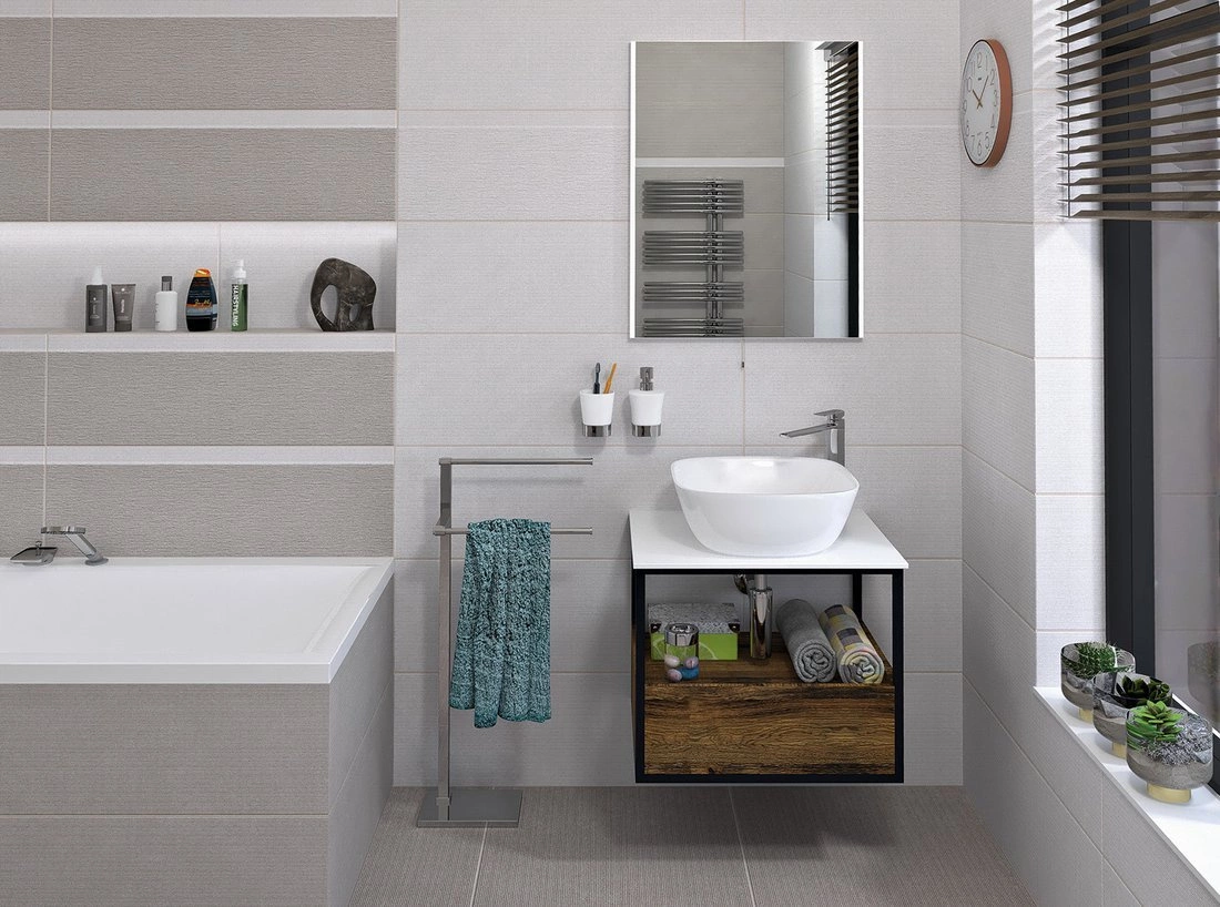 Górny blat / umywalkę można opcjonalnie zastąpić blatem Rockstone z naszej oferty, na którym możesz postawić dowolną umywalkę nablatową. Standardowo wykonane w dekorze dąb Colligwood i Alabama. Możliwość wykonania w dekorach grupy A (bez dodatkowej opłaty) i B ( dodatkowa opłata 20 %)