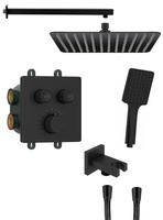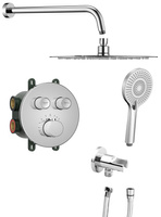 Zestaw prysznicowy z baterią termostatyczną z uchwytem rączki prysznicowej, 2 funkcyjny, deszczownia okrągła, chrom