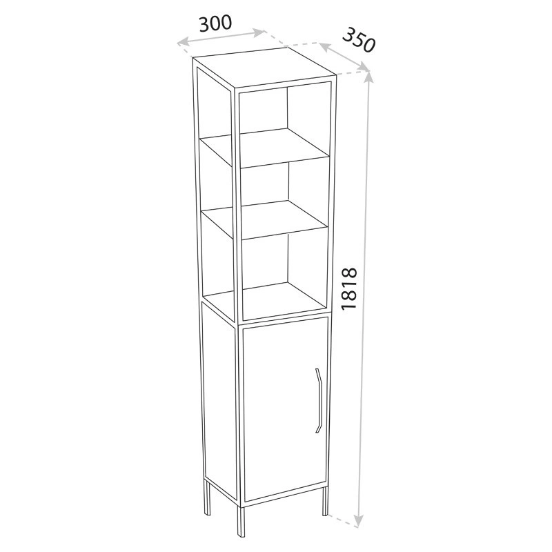 Słupek stojący Plano 350 to elegancki i praktyczny mebel łazienkowy, który łączy nowoczesny design z dużą funkcjonalnością. Wykonany z wytrzymałych materiałów, wnosi do wnętrza industrialny i stylowy charakter. Mebel posiada jedną zamykaną szafkę oraz trzy otwarte półki, które oferują praktyczną przestrzeń do przechowywania kosmetyków, ręczników i akcesoriów łazienkowych. Smukła konstrukcja sprawia, że słupek zmieści się nawet w mniejszych łazienkach, zachowując elegancki i nowoczesny wygląd.
