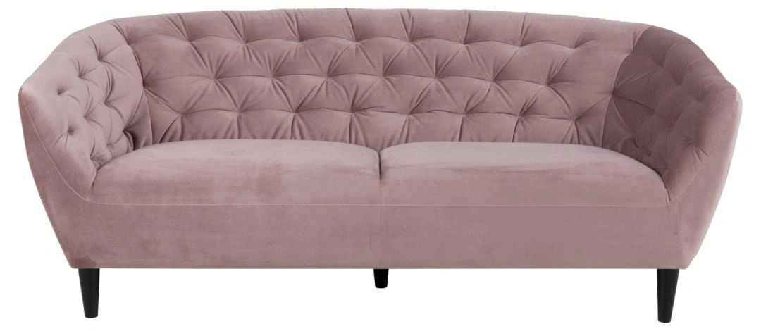 Miękka, aksamitna w dotyku tkanina podkreśla elegancję mebla, a dekoracyjne pikowanie z guzikami (tufting) na oparciu i siedzisku dodaje sofie klasycznego, luksusowego wyglądu. Dzięki temu model Ria świetnie odnajduje się zarówno w aranżacjach nowoczesnych, skandynawskich, jak i glamour.