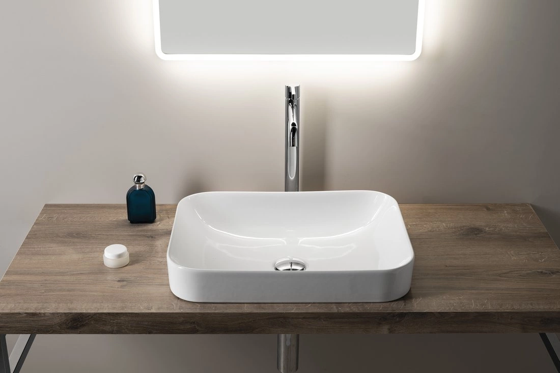 Dodatkowym atutem jest, że umywalki można postawić na blacie lub wpuścić w blat. W serii są również efektowne umywalki półblatowe.