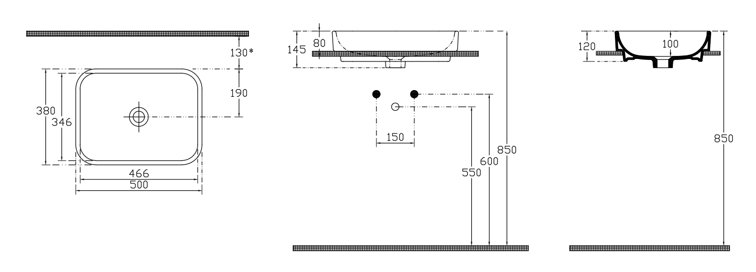 | Typ umywalki | Umywalka wpuszczana w blat |