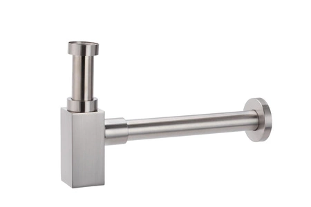 Wydajny, trwały i elegancki syfon butelkowy KLEOME w wykończeniu nikiel szczotkowany nada naszej aranżacji łazienkowej nowoczesnego charakteru. Prostopadłościenny kształt i dekoracyjna powłoka wyznacza mu miejsce w otwartej przestrzeni umywalki, w łazience w stylu industialnym lub jego łagodniejszej odmianie – soft loft.