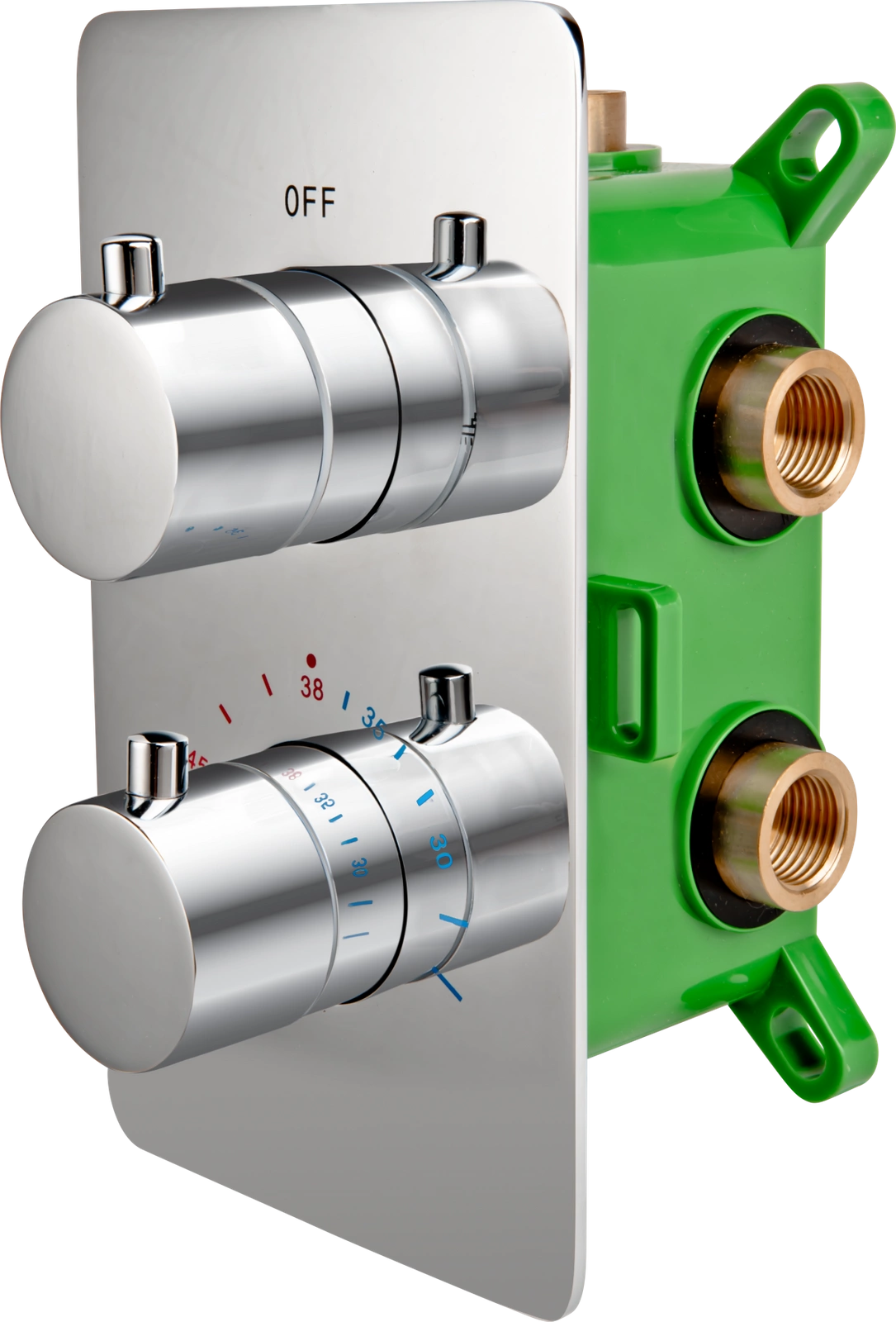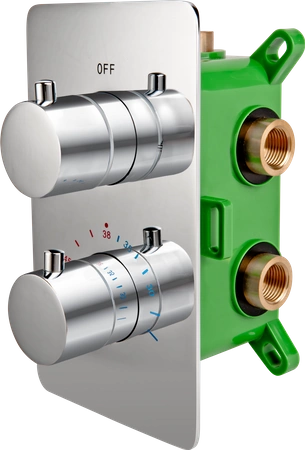 Podtynkowy box Stabilla to zamknięty w solidnej obudowie mechanizm baterii, który umieszczamy w ścianie. Na zewnątrz widać tylko estetyczne elementy natynkowe: okrągłe pokrętła i niedużą maskownicę o zaoblonych krawędziach. Zastosowany termostat umożliwia precyzyjne ustawienie stałej, optymalnej temperatury i pożądanej intensywności strumienia. Blokada gorącej wody Safe Stop 38°C chroni przed poparzeniem. Jest to rozwiązanie komfortowe, bezpieczne, ekologiczne, a przy tym uniwersalne i dające wiele swobody aranżacyjnej. Nie zajmuje wiele miejsca i pasuje do każdego stylu, od klasyki po nowoczesne nurty.