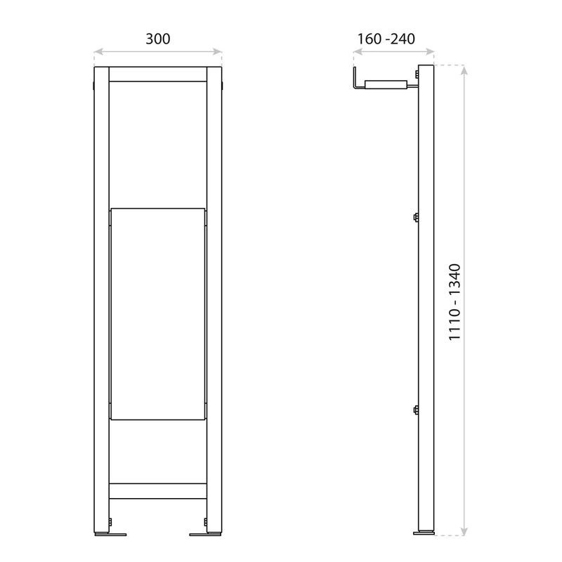Stelaż do montażu uchwytu dla niepełnosprawnych LAV 700 posiada w zestawie: ramę stalową, komplet elementów przyłączeniowych, zestaw śrub i wkrętów do montażu, a także regulowane nóżki z możliwością wysunięcia do 230mm. Produkt posiada 300mm szerokości. Do wykonania stelaża LAV 700 użyliśmy najlepszej jakości materiałów, dodatkowo kontrolując każdy etap jego produkcji. Wszystko to dla zagwarantowania wytrzymałości oraz stabilności produktu, ale przede wszystkim zapewnienia bezpieczeństwa każdemu domownikowi.