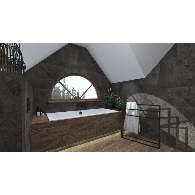 Stojak na ręcznik HALMAHERA 800 charakteryzuje się geometryczną konstrukcją składającą się z trzech prostokątnych ramion. Rozmiar modelu dedykowany jest do średniej i dużej wielkości łazienek oraz pozwoli pomieścić sporą ilość ręczników. Minimalistyczny look bryły w połączeniu z czarną, matową barwą odpowiadają za wyjątkowy design produktu, który ozdobi każde wnętrze zaprojektowane w nowoczesnym, eleganckim czy loftowym stylu. Co ważne, dzięki stojakowi na ręczniki HALMAHERA 800 łazienka będzie prezentować się nienagannie i świeżo.