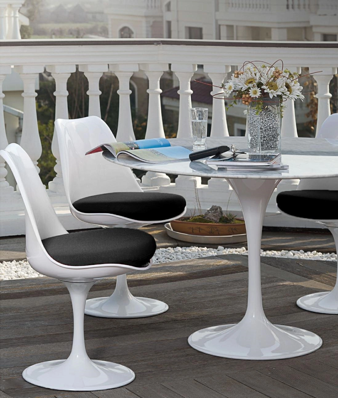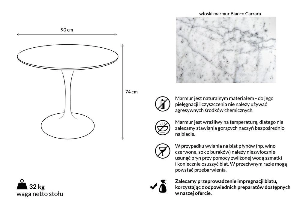 Stół TULIP MARBLE 90 CARRARA biały - blat okrągły marmurowy, metal
