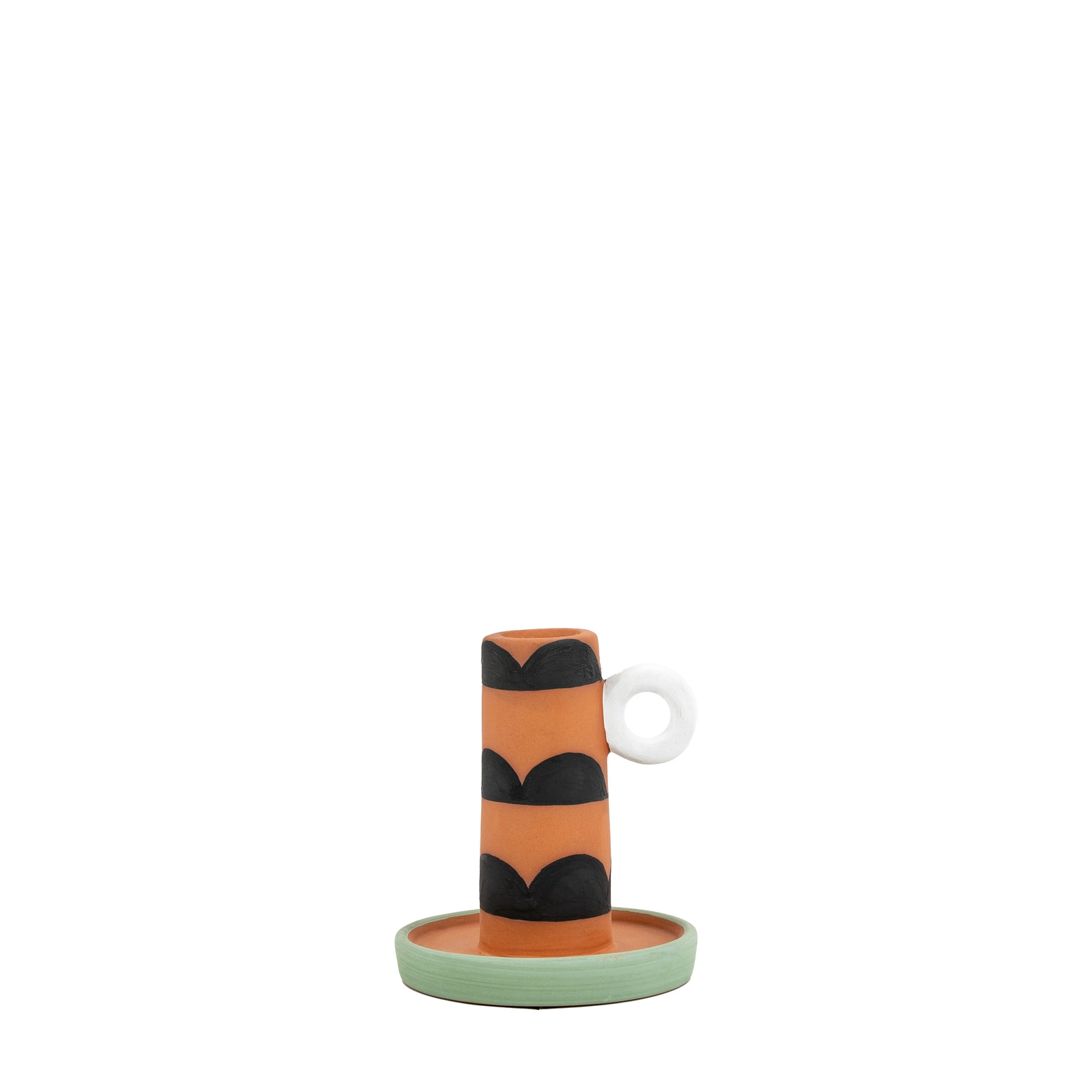 Ten świecznik, będący nowoczesną wersją klasycznego modelu, dzięki nietypowemu, odważnemu wzorowi i prostemu kształtowi doda współczesnego charakteru każdemu pomieszczeniu. Używany pojedynczo lub z dopasowanymi elementami, jest elementem, który przyciąga wzrok.