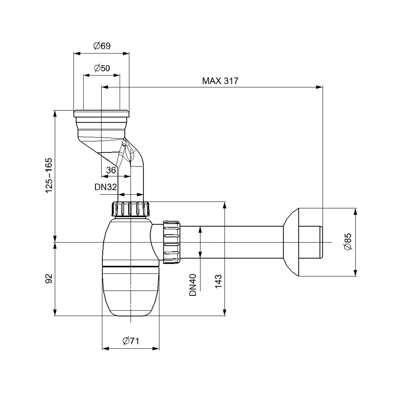 | Średnica odpływu | 40 mm |