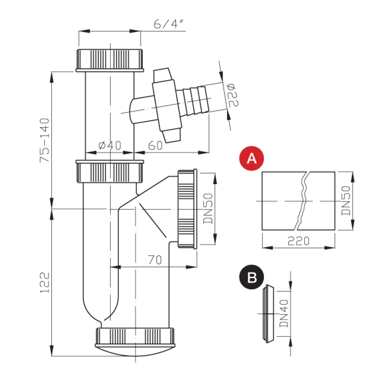 Syfon zlewozmywakowy z przyłącze do pralki, 6/4", DN50, biały