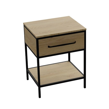 Szafka stojąca Plano 600 to idealne rozwiązanie dla osób poszukujących nowoczesnego, eleganckiego mebla do łazienki. Wykonana z wytrzymałych materiałów w połączeniu naturalnego wykończenia płyty drewno podobnej z czarnymi, metalowymi elementami, szafka wprowadza do wnętrza wyjątkowy, industrialny charakter. Jedna pojemna szuflada oraz otwarta półka u dołu zapewniają praktyczną przestrzeń do przechowywania kosmetyków, ręczników i drobnych akcesoriów, ułatwiając utrzymanie porządku w łazience. Smukła konstrukcja i nowoczesny design sprawiają, że szafka doskonale komponuje się z różnymi stylami aranżacji, od minimalistycznych po loftowe.