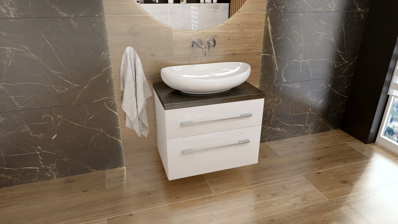 Szafki KALIFORNIA występują w dwóch rozmiarach: 596mm oraz 805mm, dzięki czemu można je wkomponować w każdy projekt łazienki, niezależnie od wolnej powierzchni. Fronty i korpusy szafek wykonano z płyty lakierowanej. Systemowe szuflady zostały wyposażone w funkcję cichego domyku i pełnego wysuwu, co jest gwarancją komfortowego użytkowania. Ich kompaktowa głębokość ułatwia przechowywanie niezbędnych akcesoriów, a dostęp do nich nie jest ograniczony. Do kolekcji KALIFORNIA przygotowaliśmy dwa rodzaje umywalek kompatybilnych - Floryda 60 lub Kalifornia 60, dzięki czemu instalacja jest niezwykle prosta. Do szafek możesz wybrać również blat łazienkowy dostępny w 5 kolorach oraz dowolną umywalkę nablatową, spośród naszej szerokiej oferty. Z każdym z tych wariantów stworzysz wymarzoną łazienkę, skrojoną według własnych potrzeb.