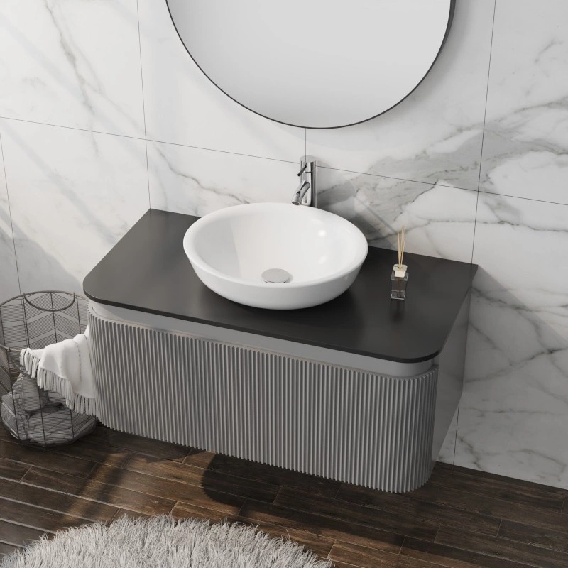 Stosując meble łazienkowe, należy zwrócić uwagę na ich wielkość, aby zapewnić odpowiednią ilość przestrzeni do poruszania się w łazience. Warto także pamiętać o ergonomii, czyli o dostosowaniu mebli do potrzeb użytkowników - zarówno pod względem wysokości, jak i umiejscowienia półek czy szuflad. Szafka wisząca Vermont Grey 1000 z dużą pojemną szufladą na prowadnicach z cichym domykiem pozwala zagospodarować ręczniki, płyny i inne dodatki.