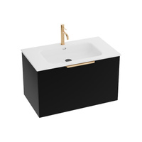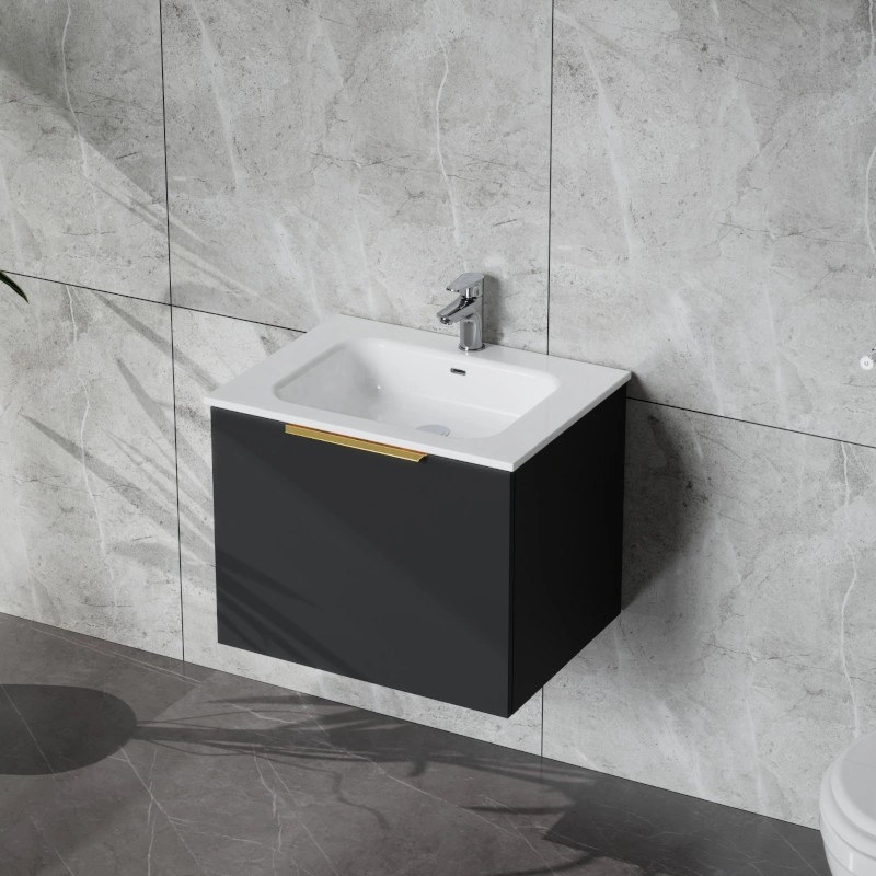 Szafka wisząca czarna ze złotym uchwytem to doskonała propozycja dla osób poszukujących eleganckich, a zarazem dyskretnych rozwiązań meblowych do łazienki. Czarny kolor zestawiony z złotymi akcentami nadaje szafce wyjątkowego charakteru, który z łatwością można dopasować do różnych aranżacji wnętrz.