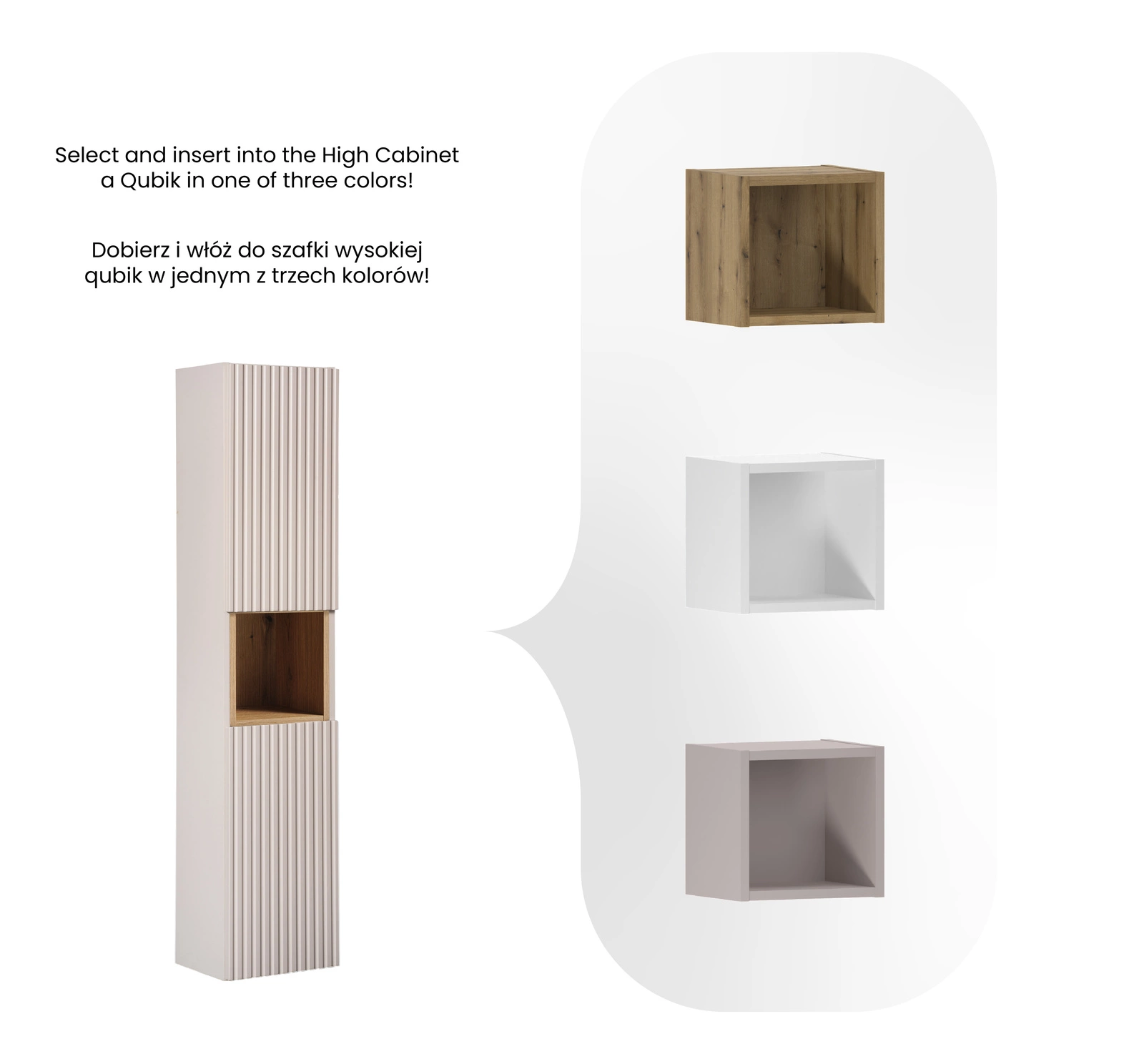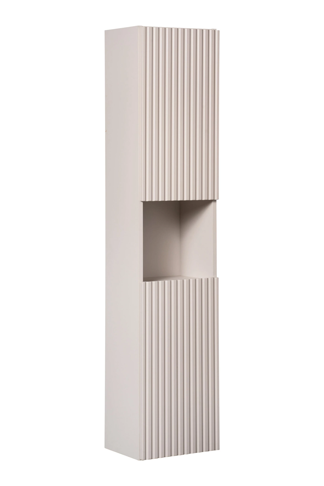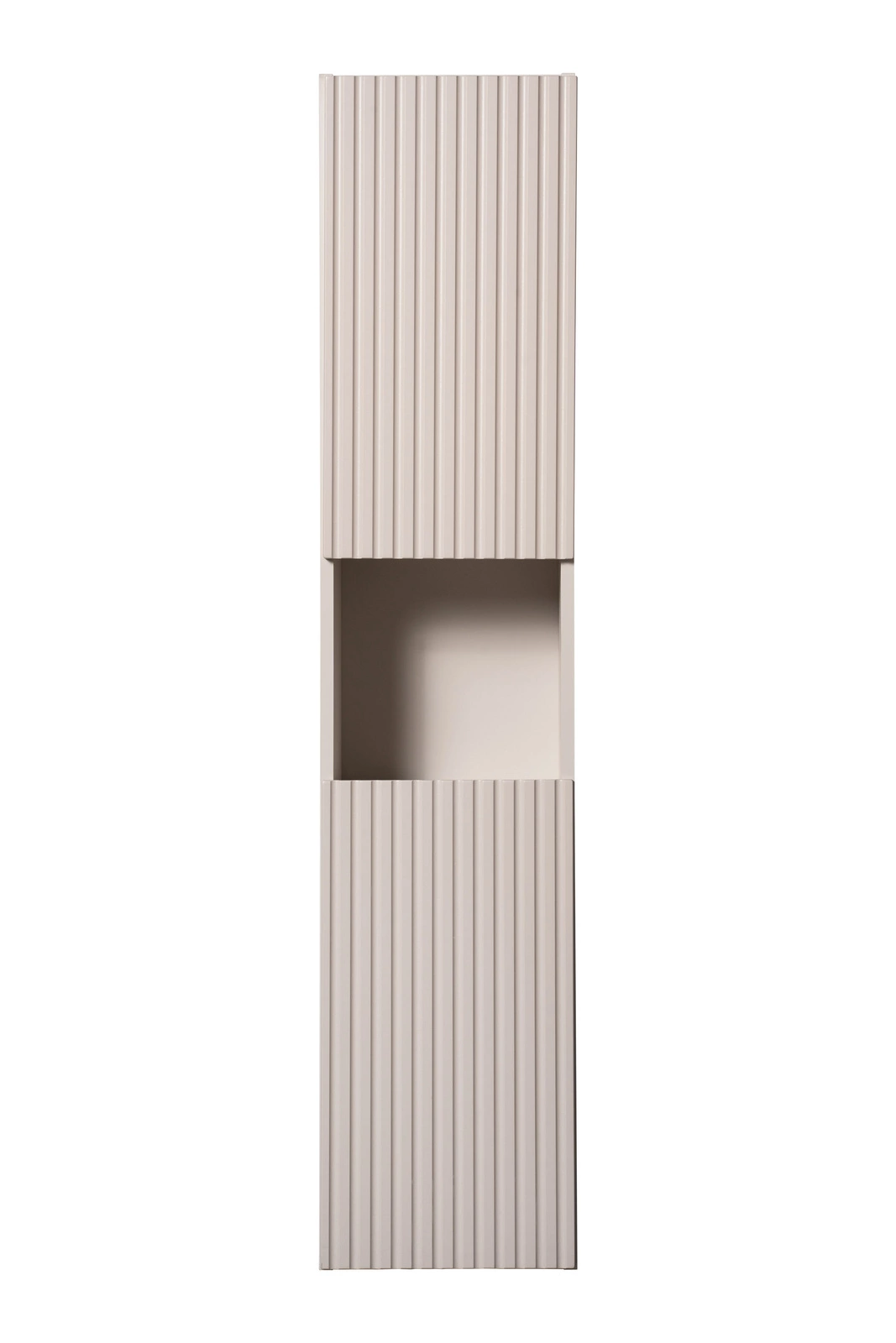Szafka wysoka dwudrzwiowa z kolekcji Nova Cashmere łączy harmonijny, minimalistyczny design z funkcjonalnością, inspirowaną codziennymi potrzebami i trwałymi rozwiązaniami. Pionowe, ryflowane fronty nadają meblom unikalny charakter i optycznie powiększają przestrzeń łazienki, a kaszmirowy kolor dodaje subtelnego ciepła, doskonale komponując się z różnorodnymi aranżacjami wnętrz. Zintegrowane podchwyty nie tylko podkreślają jej styl, ale również wprowadzają spójność wizualną.