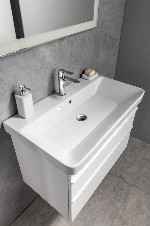 Smukła linia i wyraźnie ścięte wnętrze umywalki, to charakterystyczne znaki serii THALIE. W połączeniu z meblami THEIA tworzą schludny, ponadczasowy komplet, który się sprawdzi w każdej nowoczesnej łazience.