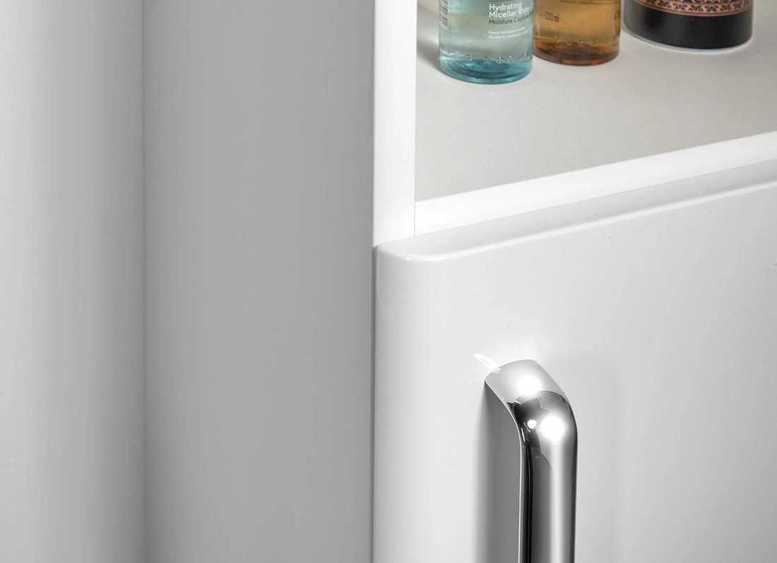 Nowoczesna linia szafek z serii THEIA podkreślona efektownymi uchwytami doskonale współgra z umywalkami ceramicznymi THALIE tworząc ponadczasowy komplet, który pasuje do każdej nowoczesnej łazienki. Kontury są wzajemnie dopasowane tworząc czysty i schludny wygląd całości.
