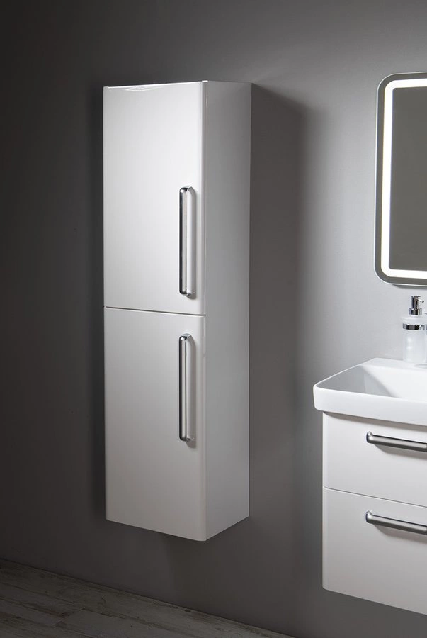 Szuflady wyposażone są w prowadnice marki BLUM ® z dożywotnią gwarancją, drzwiczki wyposażone są w zawiasy ze zintegrowanym systemem zamykania. W ofercie mamy szafki pod umywalkę z szufladami lub drzwiczkami oraz wysoki słupek w dwu wymiarach. Szufladę szafki umywalkowej o szerokości 80 cm można dodatkowo wyposażyć praktycznym organizerem, do słupka o szerokości 35 cm polecamy tkaninowy kosz na bieliznę. Meble z serii Theia są dostępne w kolorze biały połyk oraz w dwu dekorach w wersji laminowanej.