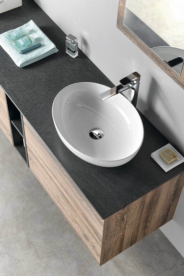 Standardowo oferujemy meble w 4 wariantach kolorystycznych. Do wyboru są 2 wymiary umywalki Rockstone pod blat lub umywalki nablatowe. Serię uzupełniają 2 rodzaje dodatkowych wysokich szafek z zawiasami BLUM i systemem TIP-ON. W przypadku, że życzysz sobie umieścić do szafki kosz na pranie, możesz dodatkowo zamówić kosz z tkaniny mocowany na rzep, który łatwo zainstalujesz do szafki po wyjęciu półek (dotyczy tylko szafek o szerokości 35 cm)