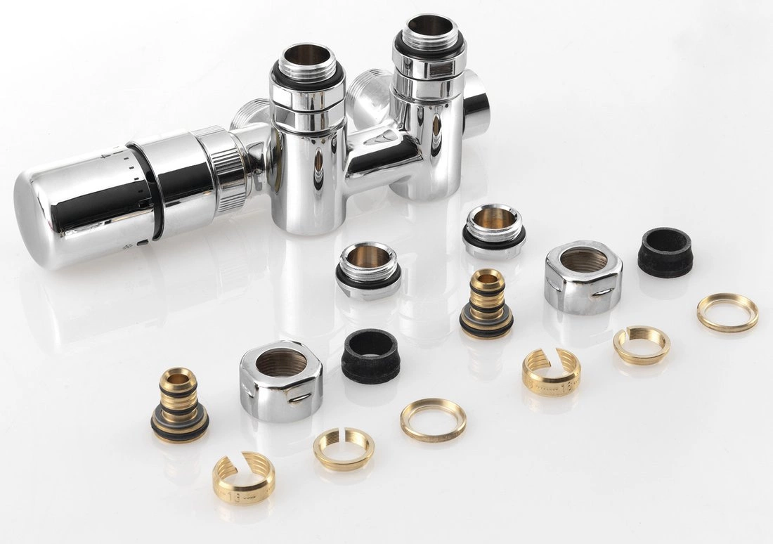 Zestaw zawiera złączki do Cu (Ø15 mm ) i Alupex (Ø16x2 mm), nie trzeba kupować następnych akcesoriów, aby podłączyć grzejnik.