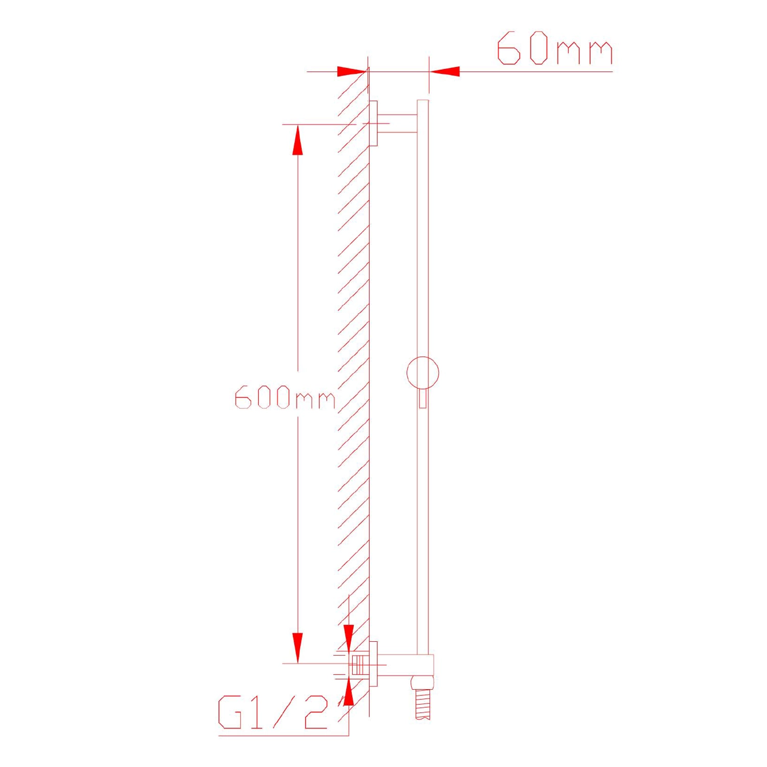 Uchwyt prysznicowy z odpływem wody, przesuwny, kwadratowy, 600mm, chrom