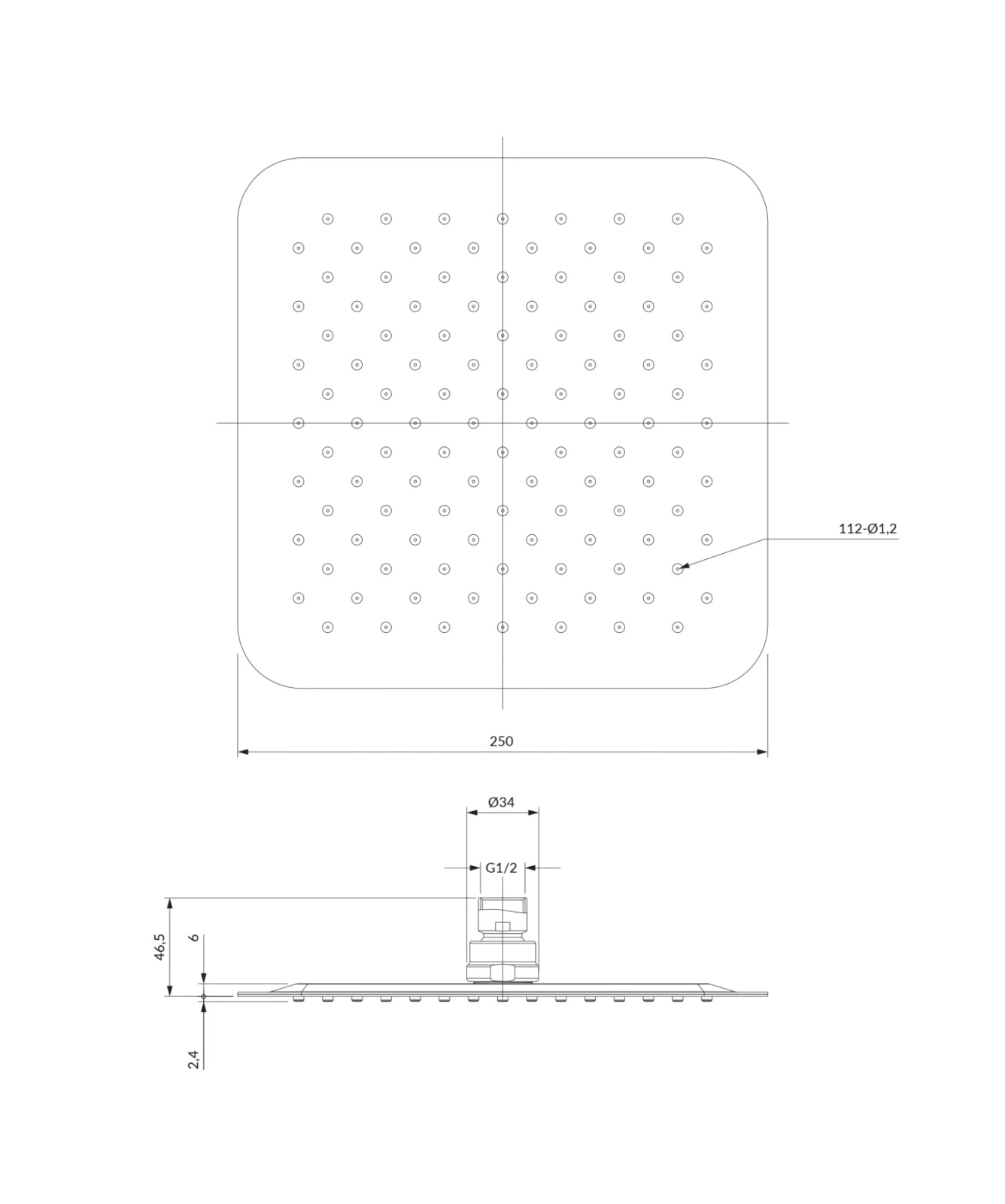 ULTRA SLIMLINE deszczownica, 25 x 25 cm, chrom połysk